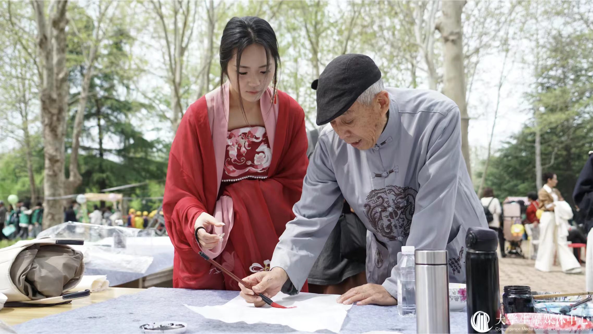活动现场牡丹盛放,氛围热烈。离退休书画协会老教师设案铺纸、泼墨挥毫,现场创作书法、牡丹绘画作品,笔墨苍劲、气韵生动,尽显深厚艺术功底。创作间隙,老教师们与大中小学生亲切互动,讲解书画技巧、传递艺术理念,在言传身教中传承中华优秀传统文化,厚植青少年文化自信。