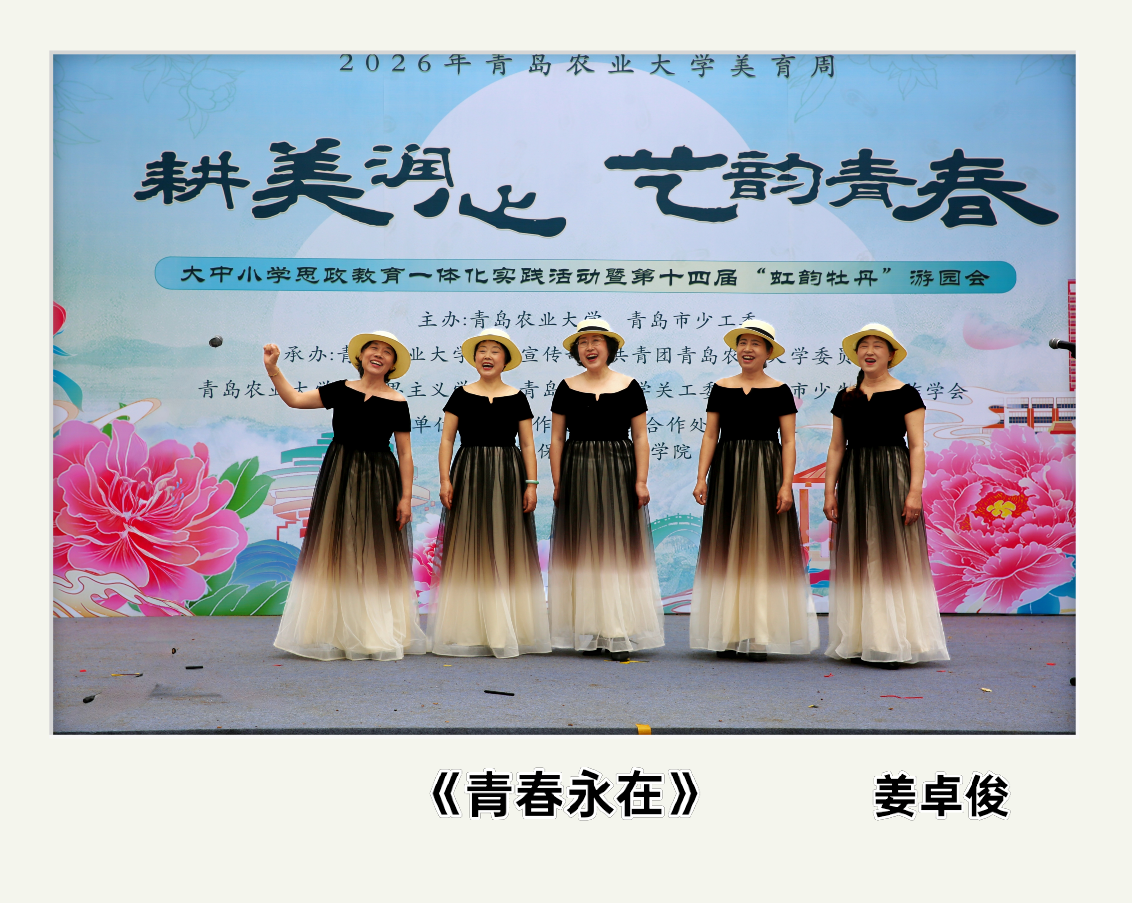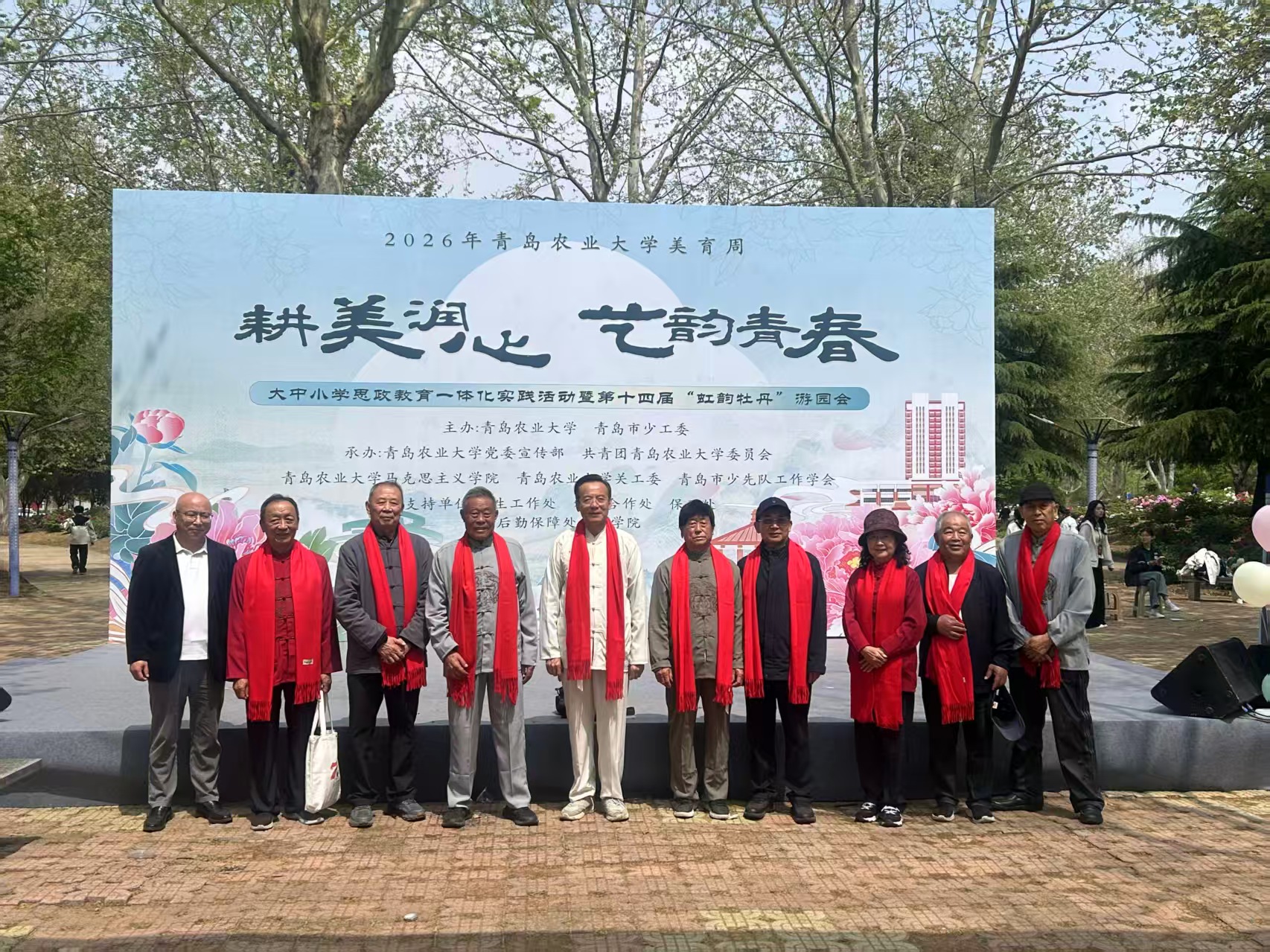 4月17日,青岛农业大学2026年美育周大中小学思政教育一体化实践活动暨第十四届“虹韵牡丹”游园会启幕。该活动由青岛农业大学、青岛市少工委主办,宣传部、团委、关工委等多部门及青岛市少先队工作学会承办。青岛农业大学关工委组织离退休教职工书画协会、音乐协会老教师积极参与,以艺术之力传承文化、传递正能量。