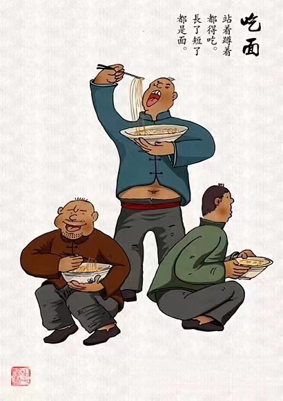 门楼底下摆几桌,汤面狼吞汗脊梁。